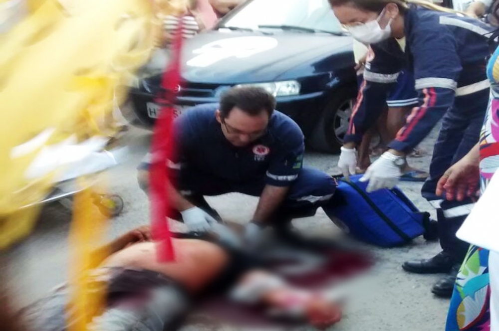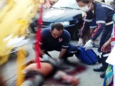 | Policial sendo atendido pelo samu logo após o tiroteio (foto enviada por internauta para POrtal Infonet) |