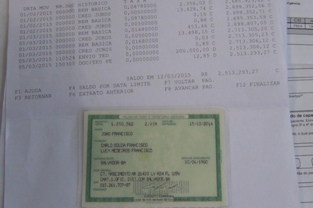 Ao chegar ao local, foi informado à guarnição que um indivíduo, em posse de uma carteira de identificação no nome de José Francisco, teria tentado tirar o extrato de uma conta, onde esta tinha o valor de R$ 2.513.293,27. Segundo os policiais, o nome no documento de identidade seria o mesmo do titular da referida conta bancária, que reside na cidade de Petrópolis, no Estado do Rio de Janeiro.